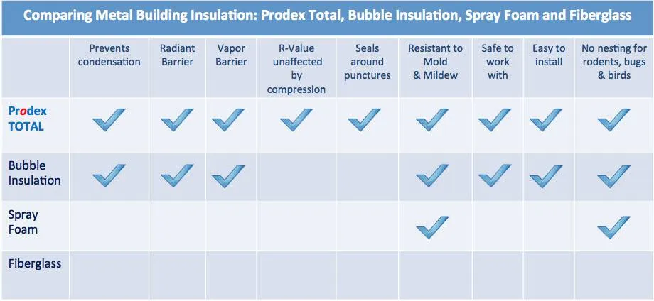 When used in conjunction with Prodex Total, fiberglass insulation can be effective in a metal building.
